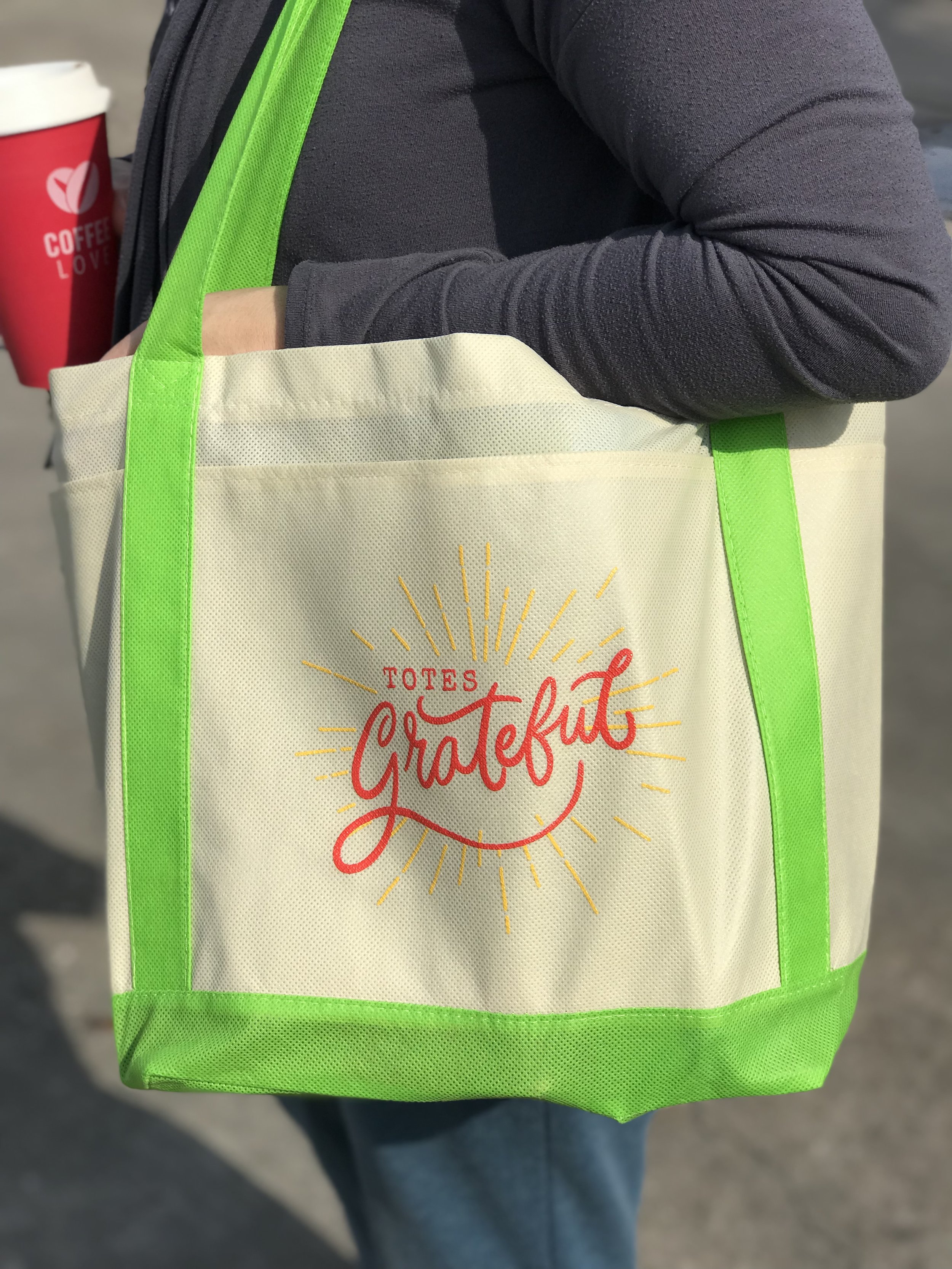 Re-usable grocery bags, tote bags for teachers, men’s t-shirts, coffee mugs and more.